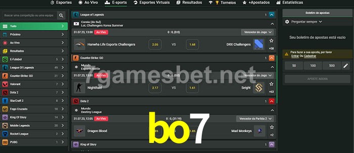O bo7 oferece uma grande seleção de opções de apostas em e-sports com probabilidades competitivas